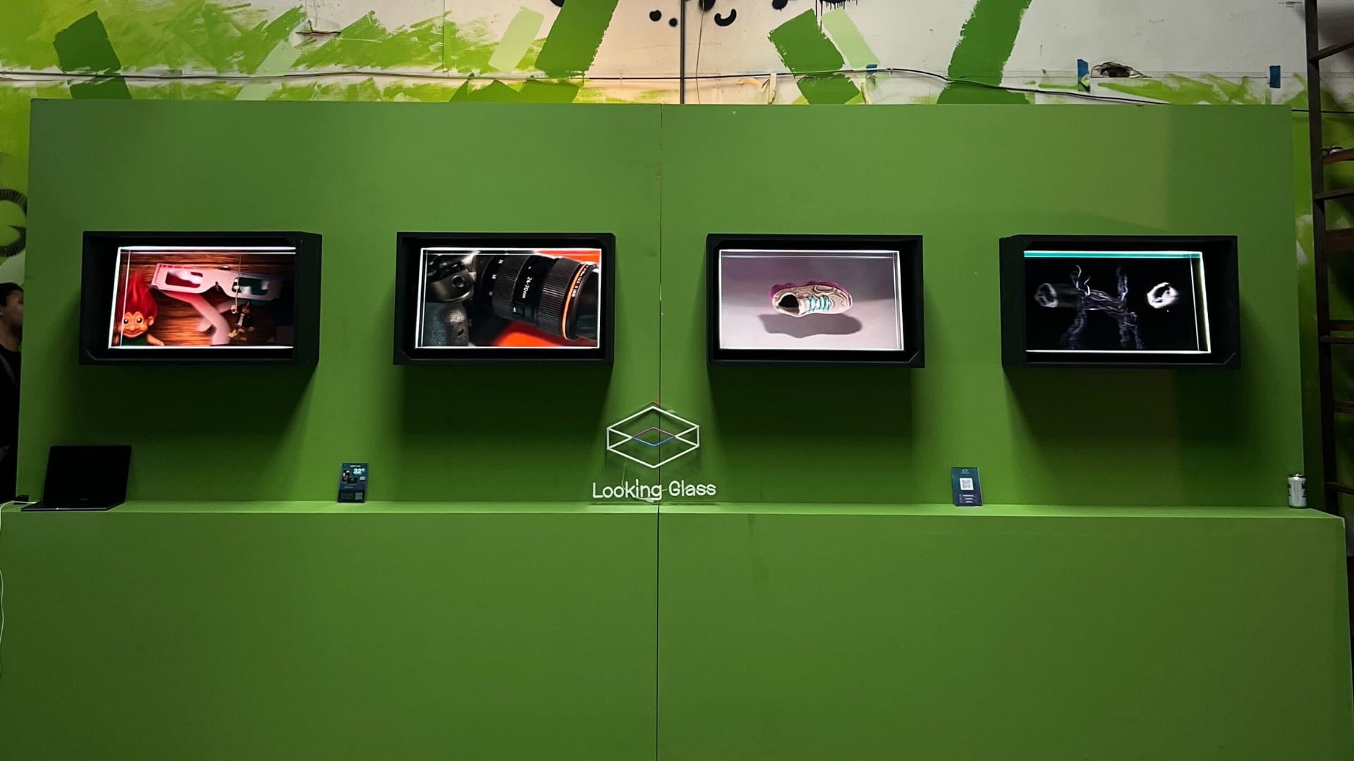 🎞️ Our 32" Looking Glass Displays showcasing community holograms & festival film stills.