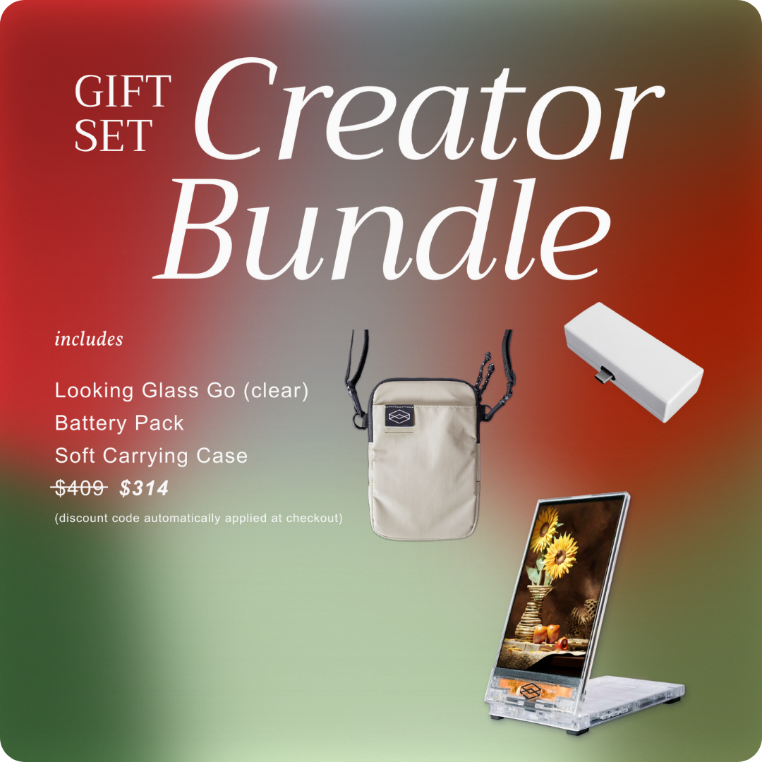 Looking Glass Go is our latest, greatest, and most accessible holographic display yet. Pair it with the perfect accessories in our bundle sets, which feature built-in savings for a limited time, and you’ve got yourself the best thing to gift this season.