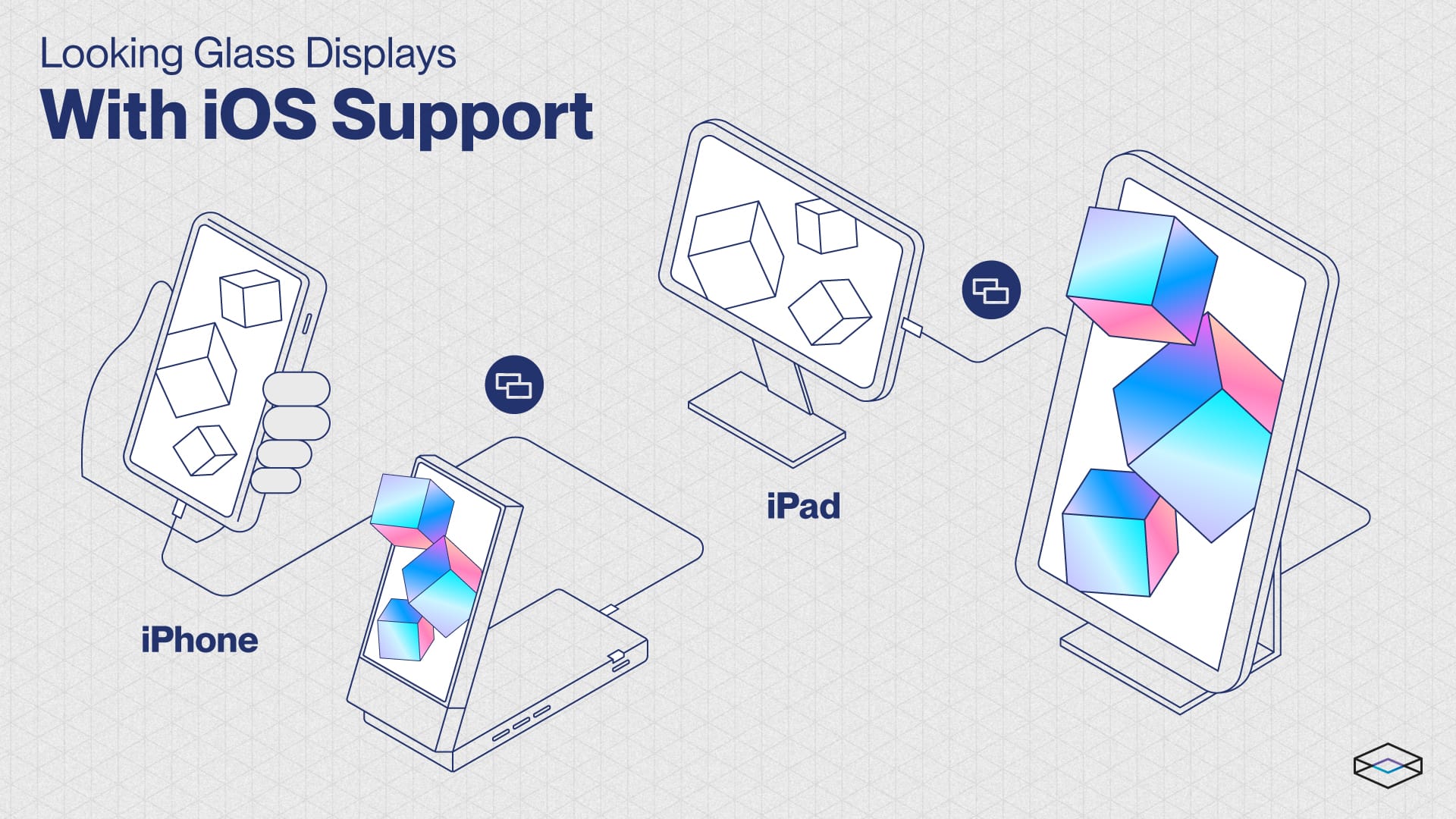 To display your hologram, you’ll need to connect your compatible iOS device to your Looking Glass Go or the latest 16” Looking Glass. Simply use a single USB-C cable, plug one end into your device and the other into your Looking Glass display, and press the power button on your Looking Glass.
