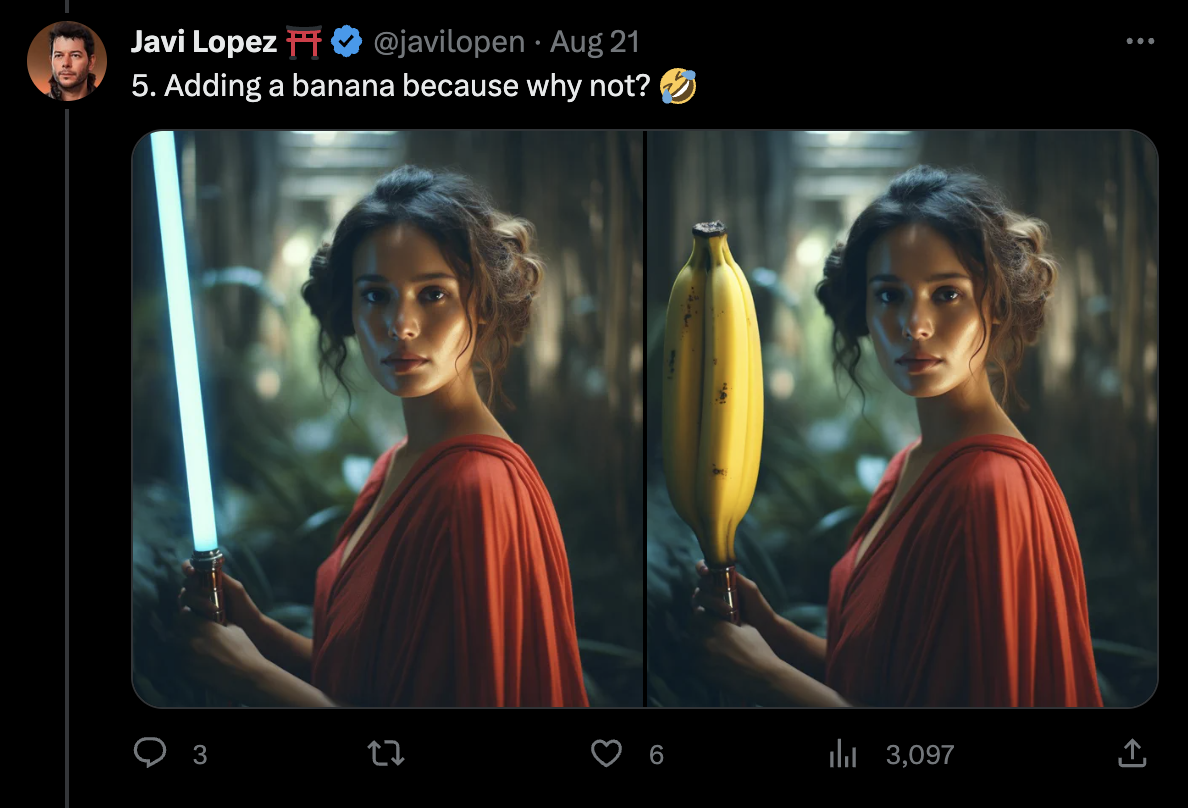 While it seems like Grimes has had this feature for well over a month now, normal plebians like us now have access to in-painting on Midjourney. This new feature allows you to edit any area of your Midjourney generations with some simple canvas editing tools. Javi Lopez has a quick and thorough video on X about how to use this new feature here.
