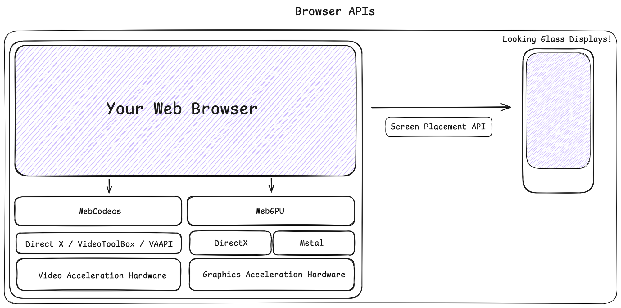Now that we’ve covered the video hardware, let’s bring this back to the web. Web browsers have been increasing support for specialized hardware with APIs like WebGPU and WebCodecs. These APIs allow us to access the computer’s graphics and video acceleration hardware and have one application which can run across multiple operating systems, including MacOS and Windows.