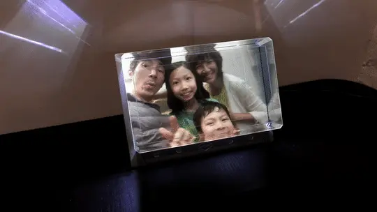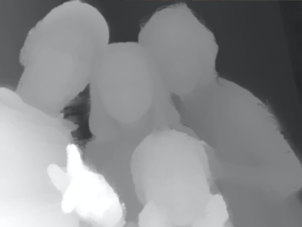 Holographic family photo of me, my kids, and my mom taken with an iPhone X and beamed straight into a 8.9" Looking Glass. Depth image of same photo on the right.